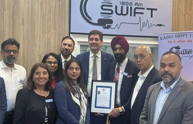 ਸਰੀ ( ਦੇ ਪ੍ਰ ਬਿ)- ਬੀਤੇ ਦਿਨ ਸਰੀ ਦੇ ਉਘੇ ਬਿਜਨਸਮੈਨ ਸ ਕੁਲਵੰਤ ਸਿੰਘ ਢੇਸੀ ਤੇ ਉਘੇ ਰੇਡੀਓ, ਟੀਵੀ ਹੋਸਟ ਤੇ ਗੀਤਕਾਰ ਦਵਿੰਦਰ ਬੈਨੀਪਾਲ ਵਲੋਂ ਬ੍ਰਿਟਿਸ਼ ਕੋਲੰਬੀਆ ਦੇ ਪੰਜਾਬੀ ਭਾਈਚਾਰੇ ਲਈ ਨਵੇਂ ਸਵਿਫਟ ਰੇਡੀਓ (1200 ਏ ਐਮ) ਦੀ ਸ਼ਾਨਦਾਰ ਸ਼ੁਰੂਆਤ ਕੀਤੀ ਗਈ। ਜ਼ਿਕਰਯੋਗ ਹੈ ਕਿ ਇਸਤੋਂ ਪਹਿਲਾਂ ਪਿਛਲੇ ਲੰਬੇ ਸਮੇਂ ਤੋਂ ਇਸ ਫਰੀਕਐਂਸੀ ਉਪਰ ਸਪਾਈਸ ਰੇਡੀਓ ਉਘੀ ਰੇਡੀਓ ਹੋਸਟ ਸੁਸ਼ਮਾ ਦੱਤ ਵਲੋਂ ਚਲਾਇਆ ਜਾ ਰਿਹਾ ਸੀ। ਸਵਿਫਟ ਰੇਡੀਓ ਸਟੇਸ਼ਨ ਦਾ ਆਫਿਸ 13049-76 ਐਵਨਿਊ ਉਪਰ ਸਥਾਪਿਤ ਕੀਤਾ ਗਿਆ ਹੈ ਤੇ ਇਸ ਨਵੇਂ ਰੇਡੀਓ ਨਾਲ ਲੰਬਾ ਤਜੁਰਬਾ ਰੱਖਣ ਵਾਲੇ ਰੇਡੀਓ ਹੋਸਟਾਂ ਦੀ ਟੀਮ ਸ਼ਾਮਿਲ ਹੋਈ ਹੈ ਜਿਹਨਾਂ ਵਿਚ ਡਾ ਜਸਵੀਰ ਸਿੰਘ ਰੋਮਾਣਾ, ਡਾ ਰਮਿੰਦਰ ਸਿੰਘ ਕੰਗ, ਸਮੀਰ ਕੌਸ਼ਲ, ਲਵੀ ਪੰਨੂੰ, ਮਿੰਨੀ ਡੌਲਾ, ਡਾ ਜਸਵਿੰਦਰ ਦਿਲਾਵਰੀ ਤੇ ਸਾਬਕਾ ਮੰਤਰੀ ਜਿੰਨੀ ਸਿਮਸ ਦੇ ਨਾਮ ਜ਼ਿਕਰਯੋਗ ਹਨ। ਰੇਡੀਓ ਸਵਿਫਟ ਦੀ ਸ਼ੁਰੂਆਤ ਮੌਕੇ ਬੀਸੀ ਦੇ ਪ੍ਰੀਮੀਅਰ ਡੇਵਿਡ ਈਬੀ , ਸਪੀਕਰ ਰਾਜ ਚੌਹਾਨ, ਕੈਬਨਿਟ ਮੰਤਰੀ ਜਗਰੂਪ ਬਰਾੜ ਅਤੇ ਐਨ ਡੀ ਪੀ ਐਮ ਐਲ ਏਜ਼, ਮੇਅਰ ਬਰੈਂਡਾ ਲੌਕ, ਕੌਸਲਰ ਮਨਦੀਪ ਨਾਗਰਾ, ਡੈਲਟਾ ਮੇਅਰ ਜੌਰਜ ਹਾਰਵੀ, ਐਮ ਪੀ ਸੁਖ ਧਾਲੀਵਾਲ, ਐਮ ਪੀ ਗੁਰਬਖਸ਼ ਸੈਣੀ ਤੇ ਹੋਰਾਂ ਨੇ ਵਿਸ਼ੇਸ਼ ਹਾਜ਼ਰੀ ਭਰਦਿਆਂ ਸ਼ੁਭਕਾਮਨਾਵਾਂ ਦਿੱਤੀਆਂ। ਬੀਸੀ ਕੰਸਰਵੇਟਿਵ ਆਗੂ ਜੌਹਨ ਰਸਟੈਡ ਅਤੇ ਕੰਸਰਵੇਟਿਵ ਐਮ ਐਲ ਏ ਸਾਥੀਆਂ ਨੇ ਵੀ ਸਮਾਗਮ ਵਿਚ ਸ਼ਾਮਿਲ ਹੁੰਦਿਆਂ ਸ਼ੁਭਕਾਮਨਾਵਾਂ ਸਾਂਝੀਆਂ ਕੀਤੀਆਂ। ਇਸ ਮੌਕੇ ਸ਼ਹਿਰ ਦੇ ਪ੍ਰਮੁੱਖ ਕਾਰੋਬਾਰੀਆਂ, ਸਮਾਜਿਕ ਤੇ ਸਿਆਸੀ ਆਗੂਆਂ ਤੇ ਭਾਈਚਾਰੇ ਦੇ ਵੱਡੀ ਗਿਣਤੀ ਵਿਚ ਲੋਕਾਂ ਨੇ ਸ਼ਮੂਲੀਅਤ ਕਰਦਿਆਂ ਰੇਡੀਓ ਸਵਿਫਟ ਦੇ ਸੰਚਾਲਕਾਂ ਤੇ ਨਵੀਂ ਟੀਮ ਨੂੰ ਵਧਾਈਆਂ ਦਿੱਤੀਆਂ ਤੇ ਉਮੀਦ ਪ੍ਰਗਟ ਕੀਤੀ ਕਿ ਨਵਾਂ ਰੇਡੀਓ ਇਕ ਸੰਤੁਲਿਤ ਪਹੁੰਚ ਤਹਿਤ ਕਮਿਊਨਿਟੀ ਦੇ ਮੁੱਦੇ ਉਠਾਉਣ ਦੇ ਨਾਲ ਲੋਕ ਭਾਵਨਾਵਾਂ ਦੀ ਬੇਹਤਰ ਤਰਜ਼ਮਾਨੀ ਕਰੇਗਾ।